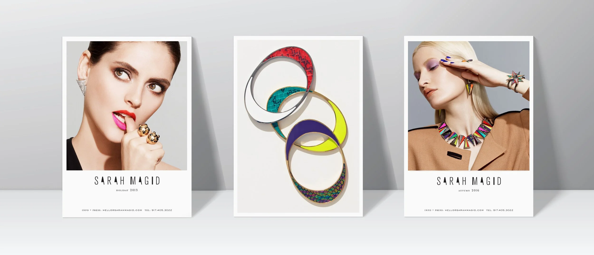 Defining a sensibility between flamboyant and classic, her art direction set the seasonal stage for Sarah’s bold designs. Chic and cheeky, the images are an homage to the ever stylish women of New York City, including some iconic muses: Frida Kahlo, Diana Vreeland, Iris Apfel. Or, as Sarah puts it, "smart women who love to pile it on."